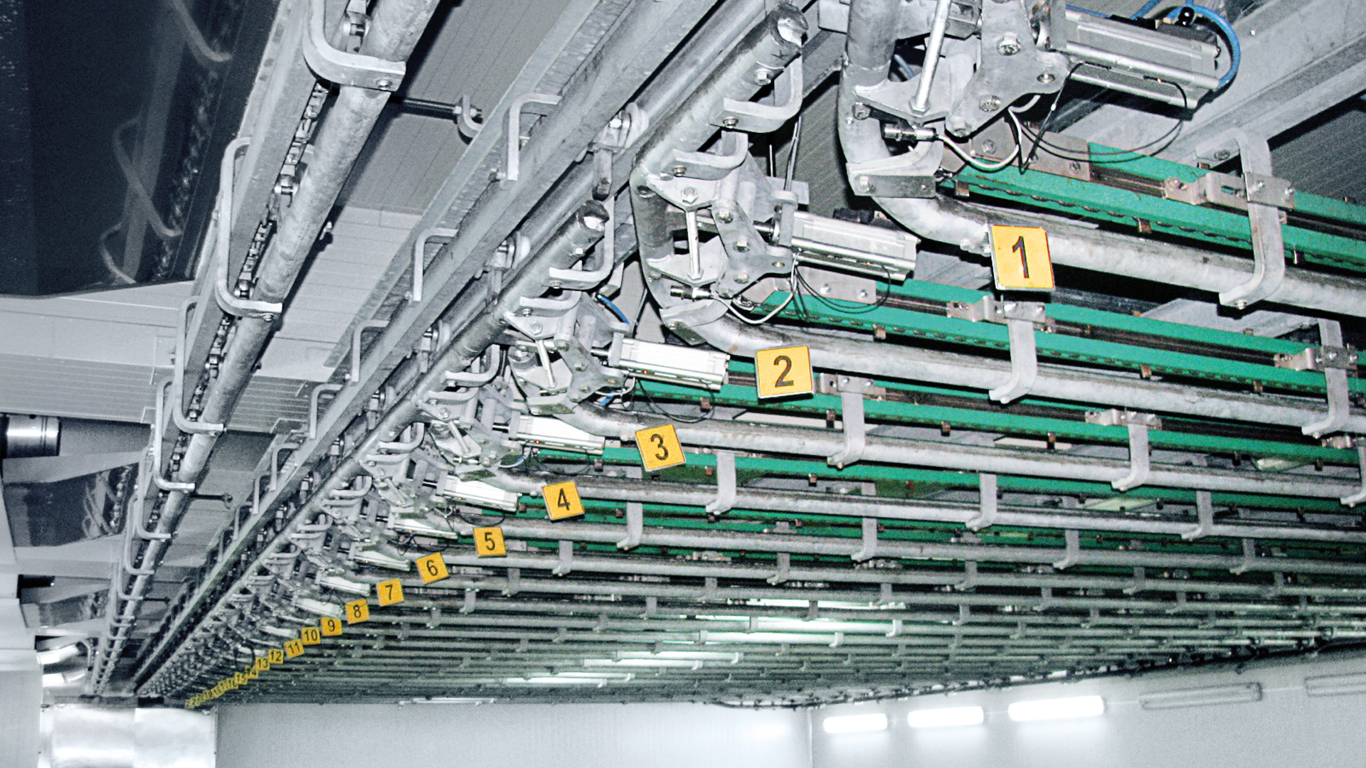 So that the cut-up carcasses can be transported without delay and with minimum effort into the refrigerated rooms, a carefully conceived tubular track concept is required. For this, we plan and build tubular track systems to your requirements to transport cut-up carcasses manually, semi-automatically or fully automatically to and from refrigerated storage rooms, which feature state-of-the-art technology.